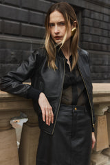 Dedicated to contributing to long wear and bridging the gap between high-end and your everyday with this bomber jacket from SOFIA IRINA. Complete with a zippered closure and side pockets with ribbing detail across the neck line and sleeve cuff.