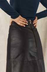 GISELLE LEATHER MIDI SKIRT - MIDNIGHT BLUE