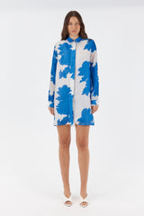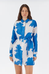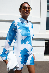 NADA OVERSIZED SHIRT DRESS - BLUE FLORAL PRINT