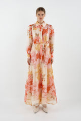 JULIE MAXI SHIRT DRESS - RED PINK FLORAL